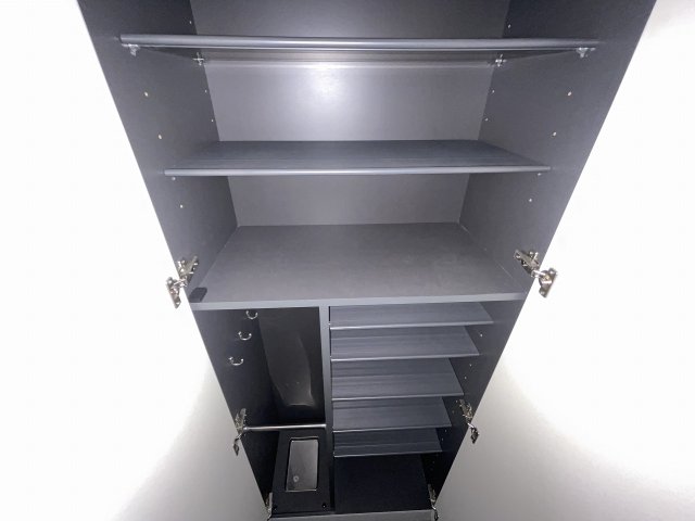 収納はクロゼット・シューズボックスなどが備え付けられているので、衣類や日用品の収納に重宝します。お手入れや収納のしやすい洗面化粧台が設置されています。 / 分譲賃貸